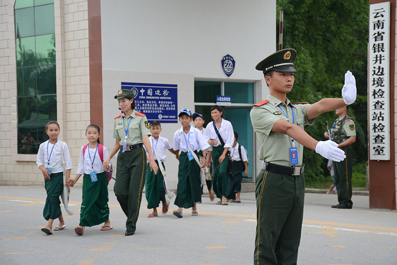 銀井邊境檢查站官兵為緬籍學(xué)生當(dāng)安全員  李富貴/攝