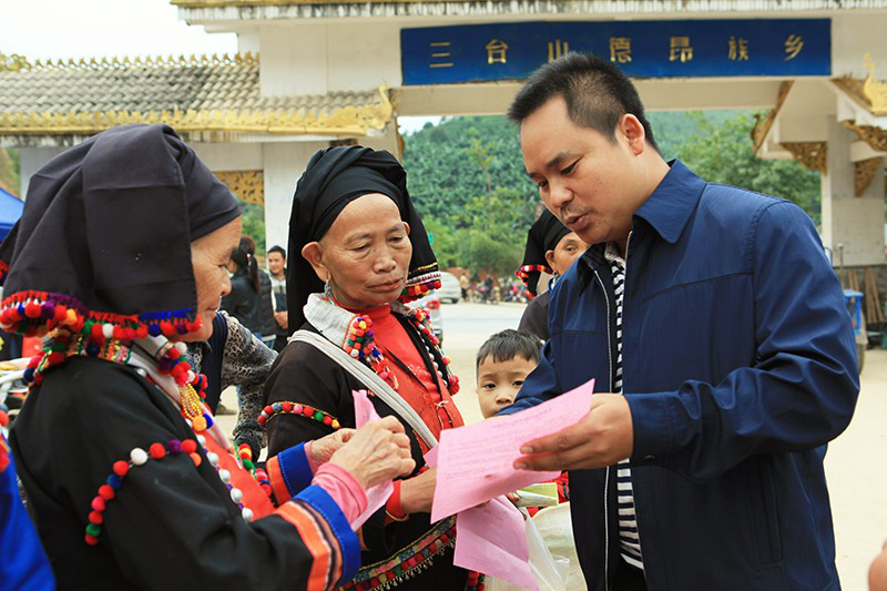 三臺(tái)山徳昂族鄉(xiāng)鄉(xiāng)長楊愛明和德昂族群眾參加農(nóng)業(yè)科技推廣活動(dòng)