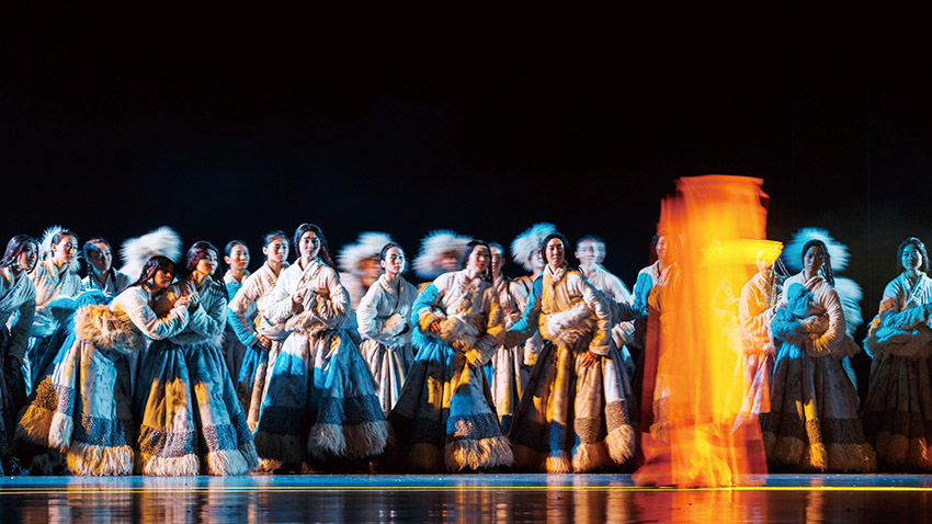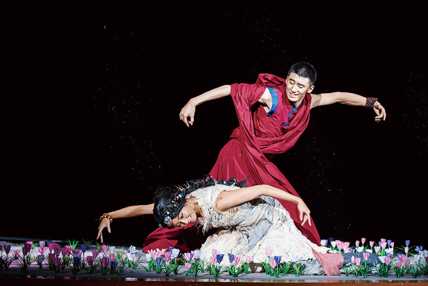 為何我們會記住倉央嘉措?無論你是否到過西藏,你看了這部舞劇后最終都會明白,因?yàn)樗且晃粍尤诵钠堑那樯K那樵?,亦是情花,遍灑在這片土地上,令繁花盛開,情緣流長。我們難以忘懷的不是這位達(dá)賴?yán)飩髌娴纳矸?,而是他對家鄉(xiāng)深深的眷念,對情愛的難以割舍。歲月無情亦有情,它做了時間的信差,傳遞了300年前的故事。面對情感,無論多么堅強(qiáng)的心都會變得柔軟。所以每一個讀過倉央嘉措詩歌的人,都會陷入那濤濤的情海里難以自拔。