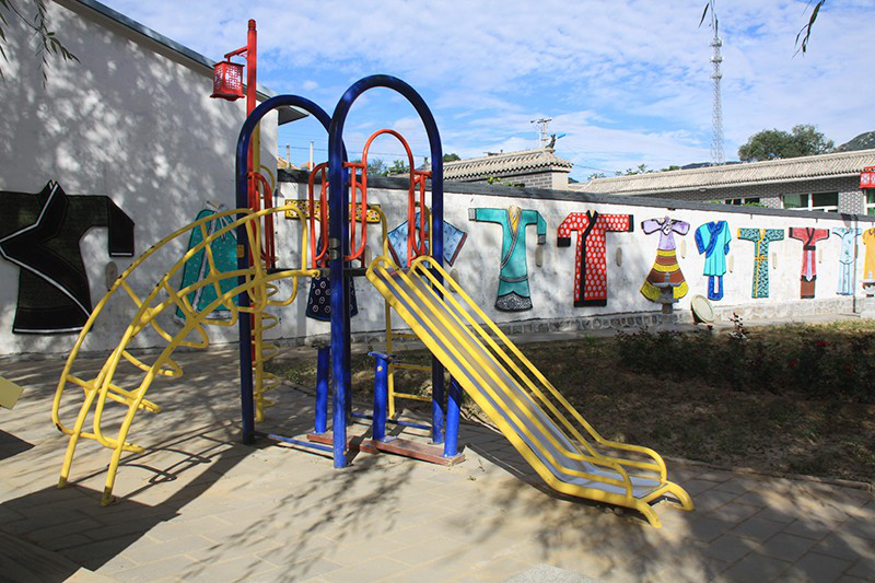 村子的胡同干凈整潔,精心設(shè)計(jì)的院墻上分別繪制著中國(guó)古代《二十四孝圖》浮雕、新編《二十四孝圖》彩繪圖、國(guó)學(xué)名言名句磚雕以及各種助人為樂(lè)兒童圖畫。