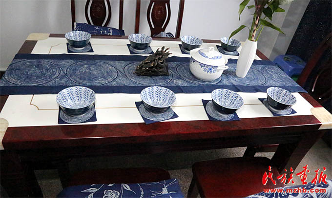 楊文斌老師和她的夫人梁定芳老師都是“非遺”傳承人。現(xiàn)在他們忙著著書、講學、開研討會。談起蠟染、談起民族民間工藝,楊文斌老師滔滔不絕:“現(xiàn)在要從三個方面認識和研究民族民間工藝:一是從歷史學、人類學、民族學的角度解讀,二是從審美學、藝術(shù)視覺理念的角度解讀,三是從工藝學、材料學、技藝學的角度解讀?,F(xiàn)在植物染料的加工和染色技藝消失得很快。老祖宗留下的寶貝到我們這代可不能扭曲和斷裂?!?/p>