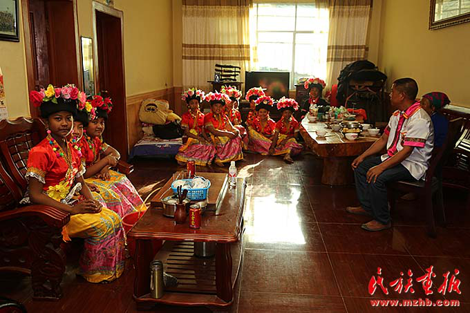“今天是好日子,是個吉祥的日子,感動天、感動地,所有的布朗族兄弟,我們歡樂來相聚?!辈祭首鍙棾〖墏鞒腥擞窨怖痛迕褚黄鸪似饋?。