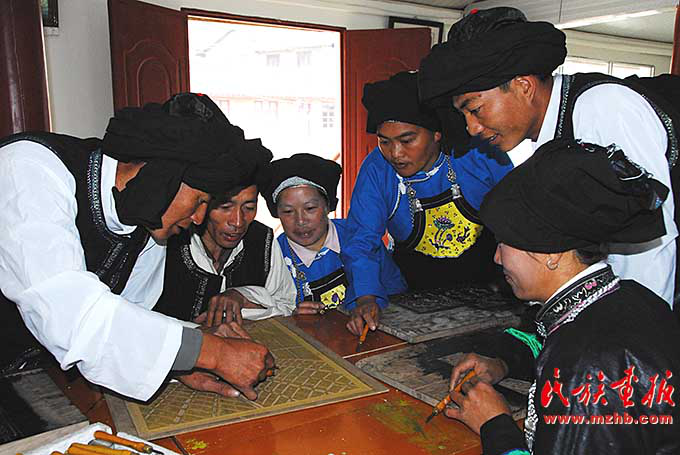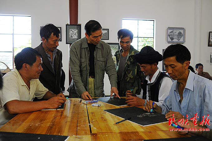 為了提升作品質(zhì)量,阿峨新寨村的版畫創(chuàng)作者邀請專家對其進(jìn)行藝術(shù)指導(dǎo)