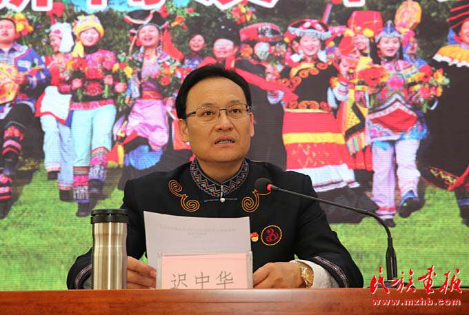 楚雄州委副書記、楚雄州人民政府州長遲中華介紹楚雄彝族自治州基本情況和自治州成立六十年來經(jīng)濟(jì)社會發(fā)展的輝煌成就等情況