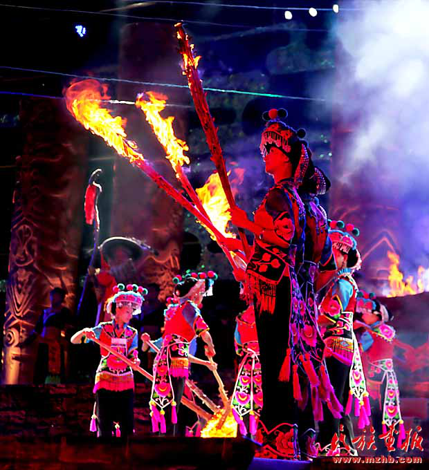 2017年火把節(jié)上楚雄民族服飾賽裝節(jié)目展演。賽裝節(jié)已經(jīng)不局限于大山深處,而是走上了更廣闊的舞臺(tái)(楚雄州民宗委 供圖)