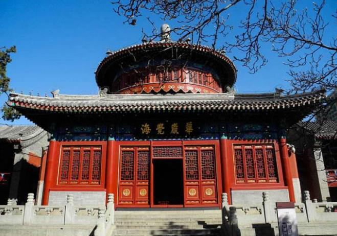 潭柘寺楞嚴(yán)壇(20世紀(jì)50年代拆除后構(gòu)建封存)位于潭柘寺西路,建于明代。殿為木構(gòu)建筑,上層為圓攢尖寶頂,下層為六角形,臺(tái)基為六角形石質(zhì)壇臺(tái)。