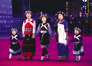 納西族演員在開(kāi)幕式走紅毯。 胡科攝
