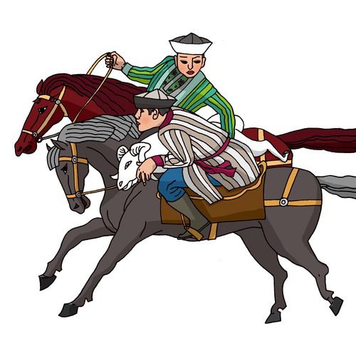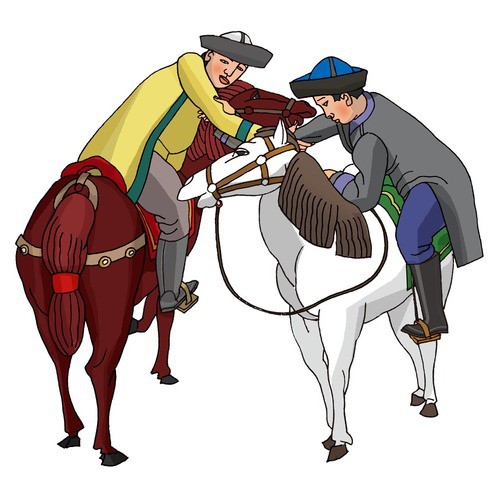 柯?tīng)柨俗巫?馬上角力):柯?tīng)柨俗巫逵?41549人,聚居在新疆克孜勒蘇柯?tīng)柨俗巫灾沃荨?聽(tīng)柨俗巫逯饕w育項(xiàng)目有賽馬、刁羊、摔跤、馬上角力、跑馬拾銀元、跑馬射元寶、月下尋物等。