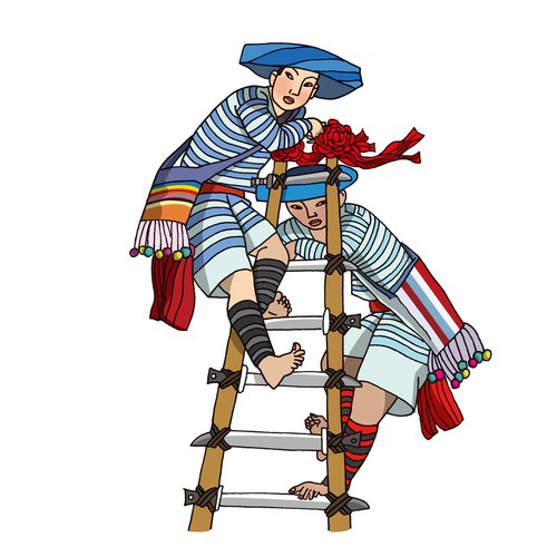 傈僳族(上刀桿):傈僳族有574856人,聚居在云南省怒江傈僳族自治州,迪慶、德宏等州亦有分布。傈僳族傳統(tǒng)體育項(xiàng)目是射弩,蕩秋千、過(guò)溜、摔跤、快速砍竹子、上刀桿、泥彈弓、溜索、游泳等。