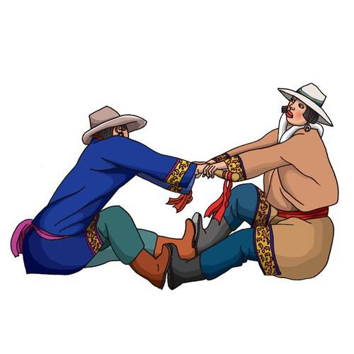 裕固族(拉棍):裕固族有12297人,聚居在甘肅省肅南裕固族自治縣和酒泉縣黃泥堡等地。裕固族傳統(tǒng)體育項(xiàng)目主要有摔跤、賽馬、射箭、拔棍、牛背角力、拉爬牛、毛槍舞、頂杠子等。