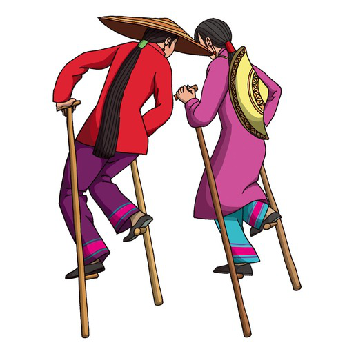 京族(高蹺):京族有18915人,聚居在廣西防城市的澫尾、巫頭、山心三島。京族傳統(tǒng)競(jìng)技活動(dòng)多與濱海文化生態(tài)環(huán)境有關(guān),傳統(tǒng)體育項(xiàng)目有捉活鴨、摸鴨蛋、跳竹杠、舞花棍、頂頭、捉貝、走田、趕狗占窩等。
