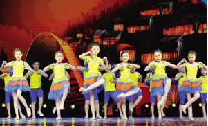 匯報(bào)演出以視頻、課堂展示與現(xiàn)場(chǎng)表演相結(jié)合的形式帶領(lǐng)觀眾穿梭于教室與舞臺(tái)之間,見證“高參小”項(xiàng)目的可喜成果。在舞臺(tái)上,孩子們精彩演繹了蒙古族、藏族、維吾爾族、苗族、彝族、壯族、朝鮮族、瑤族等十余個(gè)少數(shù)民族的舞蹈和樂器作品。其舞姿活潑可愛、優(yōu)美靈動(dòng),器樂演奏婉轉(zhuǎn)悠揚(yáng),動(dòng)感課堂、少數(shù)民族大觀課堂和教材展示極富巧思,生動(dòng)親切。劇場(chǎng)洋溢著歡聲笑語(yǔ)和活潑的童趣。