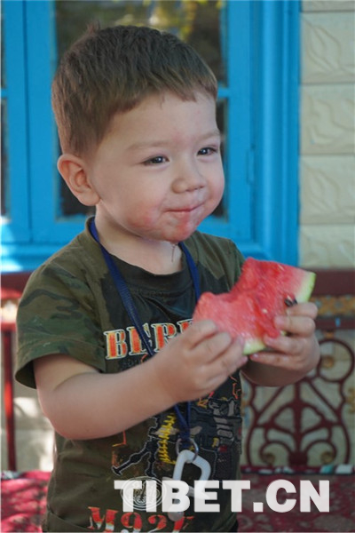 “馕是當(dāng)?shù)厝穗x不開的食物,包括這里的漢族群眾,現(xiàn)在都已經(jīng)習(xí)慣了這樣的飲食。我曾見過當(dāng)?shù)匾恍h族朋友到內(nèi)地一趟,回來后第一件事就是吃拌面、烤肉,喝奶茶,我們多個民族的人長期居住在這里,生活早已交融在一起了。”當(dāng)?shù)鼐用窈Aβ?阿吾提對記者說。圖為當(dāng)?shù)靥厣朗场?/p>