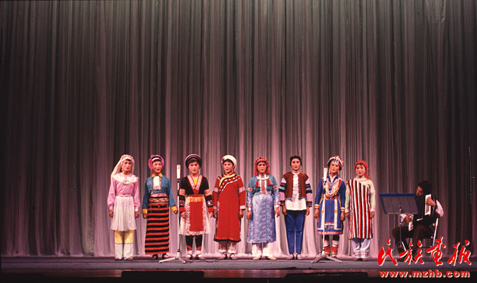 第一屆全國(guó)少數(shù)民族文藝會(huì)演于1980年9月20日至10月20日舉行。迄今為止,全國(guó)少數(shù)民族文藝會(huì)演已成功舉辦五屆。全國(guó)少數(shù)民族文藝會(huì)演是展示黨的民族政策和民族文化建設(shè)偉大成就的舞臺(tái),是展示少數(shù)民族自豪感和自信心的舞臺(tái),是展示各民族文藝工作者卓越才華的舞臺(tái),更是在中華民族大家庭里各民族“手足相親、守望相助”“共同團(tuán)結(jié)奮斗,共同繁榮發(fā)展”的真實(shí)寫照。圖為第一屆全國(guó)少數(shù)民族文藝會(huì)演中女聲小組演唱《民族團(tuán)結(jié)開(kāi)新花》《民族畫(huà)報(bào)》1981年第1期