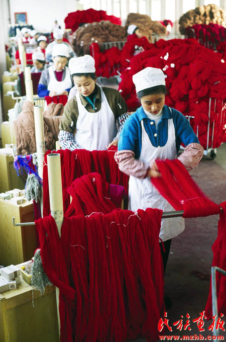 20世紀(jì)90年代初期,一些經(jīng)濟(jì)學(xué)家把戰(zhàn)略眼光投向資源豐厚的西部地區(qū),以促進(jìn)中西部省區(qū)經(jīng)濟(jì)協(xié)作為目的的隴海蘭新經(jīng)濟(jì)帶悄然成型,并輻射至西亞和歐洲。圖為跨入全國(guó)800家最大工業(yè)企業(yè)行列的甘肅省天水市甘肅絨線廠?!睹褡瀹?huà)報(bào)》1994年第4期