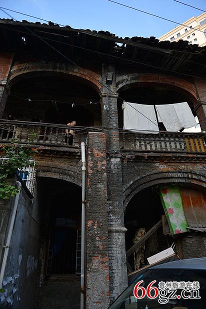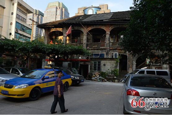 在中華北路主大街中段,穿過一個(gè)百米左右的小巷子,沿著一個(gè)小斜坡往上,盡頭一個(gè)寬敞的大院子就是“毛公館”。但是比起貴陽現(xiàn)存的其他民國(guó)建筑,“毛公館”顯得殘破不堪。如今的大院已看不出任何歷史文化古跡的痕跡,“毛公館”周邊已經(jīng)被兩個(gè)小高層建筑包圍,大院邊是一棟富麗堂皇的銀行辦公大樓和一棟證券大樓,相比起來,“毛公館”的存在顯得與這個(gè)城市格格不入。