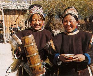 在工布地區(qū),不管是遠(yuǎn)方的來(lái)客,還是常來(lái)常往的朋友,一踏進(jìn)主人的新家,主人首先端出的是香噴噴的酥油茶。如果是尊貴的客人,還要被請(qǐng)到上座。招待來(lái)客時(shí),主人會(huì)敬上酥油茶和青稞酒,尤其是青稞酒,主人要兩手棒著,恭敬地送到客人手上,客人喝一口,主人添一次,連續(xù)三次。客人最后一口氣把杯中的酒喝完,這就是通常所說(shuō)的三口一杯。如果客人推辭,主人還要獻(xiàn)上優(yōu)美動(dòng)聽(tīng)的酒歌,以此來(lái)表達(dá)主人的熱情和對(duì)客人的尊敬,直到客人把杯中的酒喝完為上。手捧酒杯,主人依次要給所有的來(lái)客敬上一遍。杯杯醇酒,盛滿(mǎn)了工布人的情和意。那情景,常令在場(chǎng)的人感動(dòng)不已。