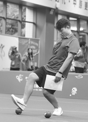 在分組循環(huán)賽女子單蹴中,河北隊(duì)員趙佳美遇到了強(qiáng)勁對手——福建隊(duì)男女混合雙蹴一等獎(jiǎng)得主鐘金雪。趙佳美發(fā)揮得不錯(cuò),雙方比分始終咬得很死。鐘金雪起腳擊球干凈利落,在比分上形成壓制。