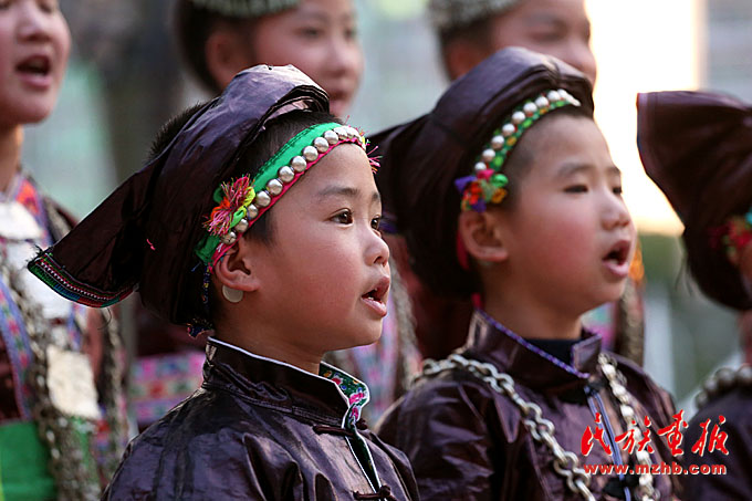 傳唱大歌的侗族合唱團(tuán)孩子們。
