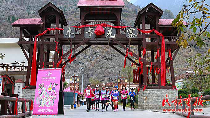 運(yùn)動(dòng)員經(jīng)過美麗的理縣木卡羌寨。