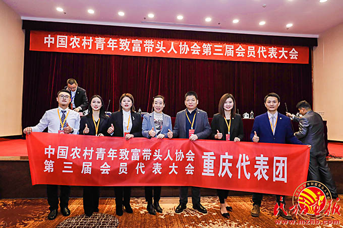 鐘億靈(左二)參加中國(guó)農(nóng)村青年致富帶頭人協(xié)會(huì)第三屆會(huì)員代表大會(huì)。