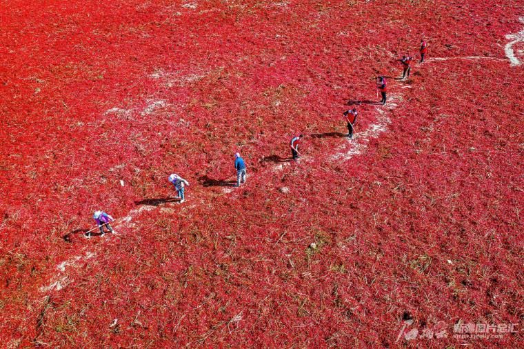 10月10日,農(nóng)民在晾曬辣椒。眼下,哈密?chē)?guó)家農(nóng)業(yè)科技園區(qū)千余畝線(xiàn)辣椒喜獲豐收。今年,哈密?chē)?guó)家農(nóng)業(yè)科技園區(qū)以政府引導(dǎo)、合作社牽頭的模式調(diào)整產(chǎn)業(yè)結(jié)構(gòu),引種用水省、效益高的訂單辣椒,助力農(nóng)民增收致富。李華攝