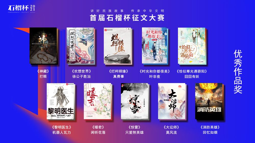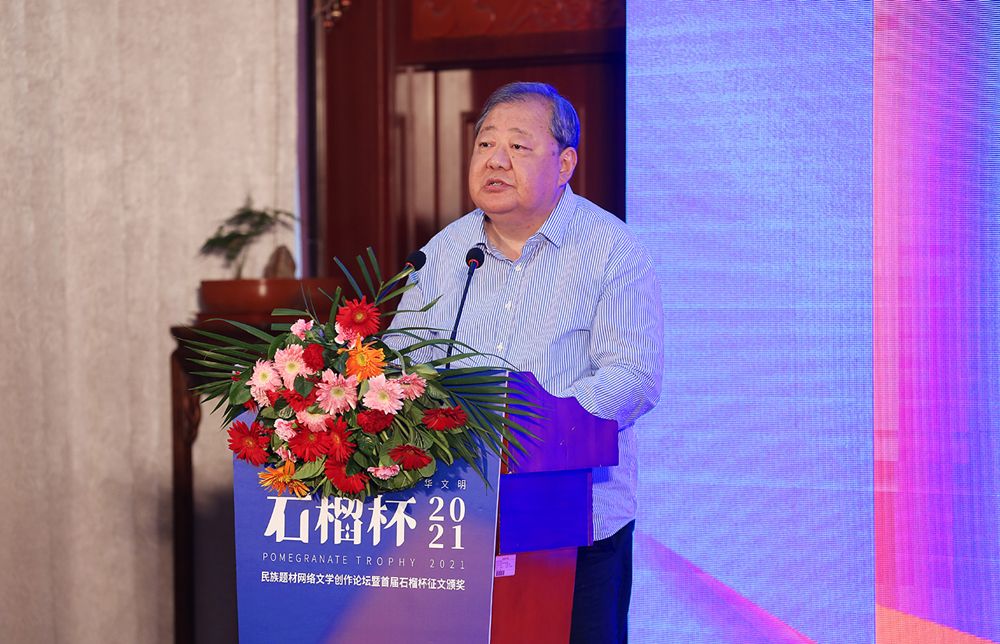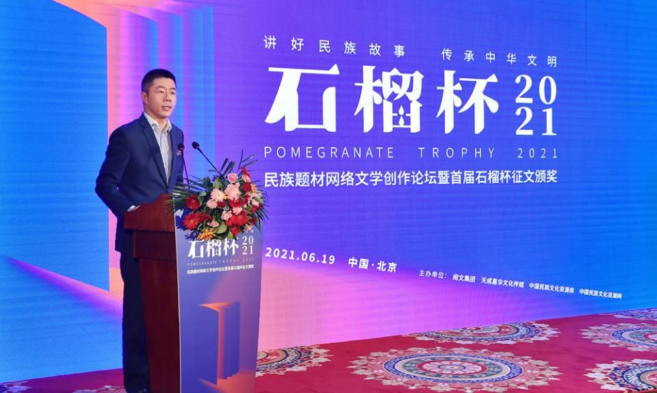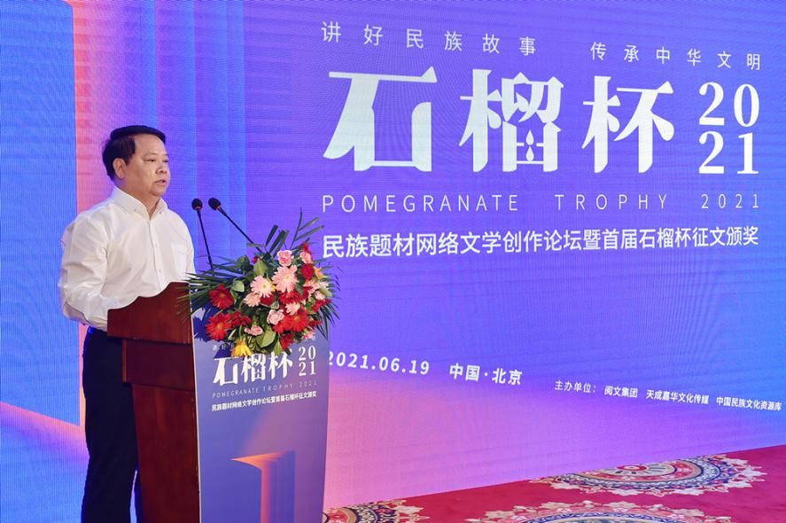 6月19日,民族題材網(wǎng)絡(luò)文學(xué)創(chuàng)作論壇暨首屆石榴杯征文大賽頒獎(jiǎng)典禮在京舉行。作為國(guó)家民委主辦的“中華民族全家?!毕盗谢顒?dòng)之一,首屆石榴杯征文大賽得到了國(guó)家民委文化宣傳司和中國(guó)少數(shù)民族文化藝術(shù)促進(jìn)會(huì)的指導(dǎo)與支持,由閱文集團(tuán)聯(lián)合天成嘉華文化傳媒、中國(guó)民族文化資源庫(kù)、中國(guó)民族文化資源網(wǎng)共同舉辦。本屆大賽以“講好民族故事 ,傳承中華文明”為主題,涌現(xiàn)出眾多弘揚(yáng)民族精神、表達(dá)文化自信、傳播正能量的作品。經(jīng)過(guò)專家推薦及嚴(yán)格評(píng)審,《草原有座蒙古包》、《走西口之天山行》、《彩云微光》等三部作品獲“最具民族風(fēng)采獎(jiǎng)”,《神藏》、《歡想世界》、《爛柯棋緣》、《時(shí)光和你都很美》、《恰似寒光遇驕陽(yáng)》、《黎明醫(yī)生》、《暖君》、《驚雷》、《大訟師》、《消防英雄》等十部作品獲“優(yōu)秀作品獎(jiǎng)”。所有獲獎(jiǎng)作品都將收錄入中國(guó)民族文化資源庫(kù)。中國(guó)作家協(xié)會(huì)副主席、書(shū)記處書(shū)記吉狄馬加表示,本屆石榴杯大賽是在黨和國(guó)家長(zhǎng)期以來(lái)堅(jiān)持的對(duì)民族文化、少數(shù)民族作家創(chuàng)作和民族題材創(chuàng)作的大力扶持下,依托網(wǎng)絡(luò)文學(xué)平臺(tái),將文學(xué)作品與影視作品改編、游戲、動(dòng)漫產(chǎn)品制作結(jié)合起來(lái),探索的一條發(fā)展民族文化的新路,具有開(kāi)創(chuàng)意義。