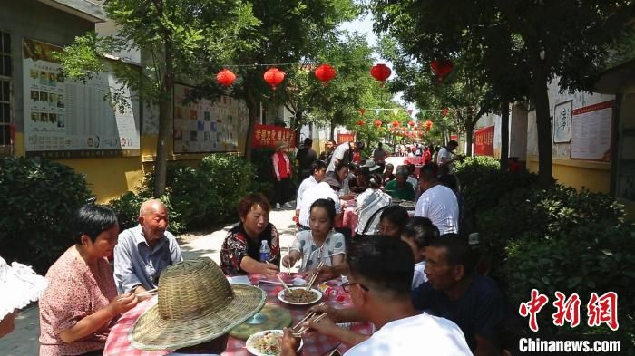 “孝善羊湯宴”將伏羊節(jié)推向高潮,當(dāng)?shù)卮迩f免費(fèi)請(qǐng)“孝善人家”代表等“喝伏羊”。 付宏 攝