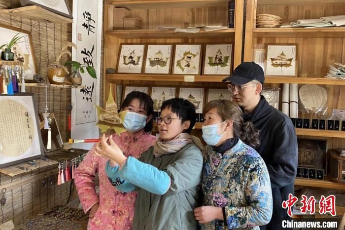 龍玉玉在她的葉雕藝術(shù)館教授葉雕技藝?!∈茉L者供圖