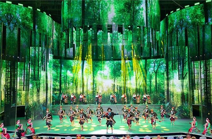 在舞美上,晚會傾力打造中華文化概念,突出鑄牢中華民族共同體意識,建構熱烈祥和的觀演環(huán)境、身臨其境的現(xiàn)場體驗、自然流暢的互動場景,以更炫麗、更時尚、更具生命力的節(jié)目內(nèi)容和形式,為觀眾提供技術與藝術完美結合的視聽盛宴。主創(chuàng)人員別具匠心地把舞臺設計成一個具有民族特色的大客廳,寓意各族兄弟姐妹溫暖團聚,營造既有民族特色又有時代氣息的視覺空間。