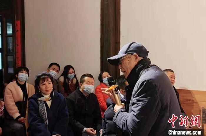 圖為陳茂錦正向現(xiàn)場(chǎng)觀眾介紹閩箏?!∪~秋云 攝