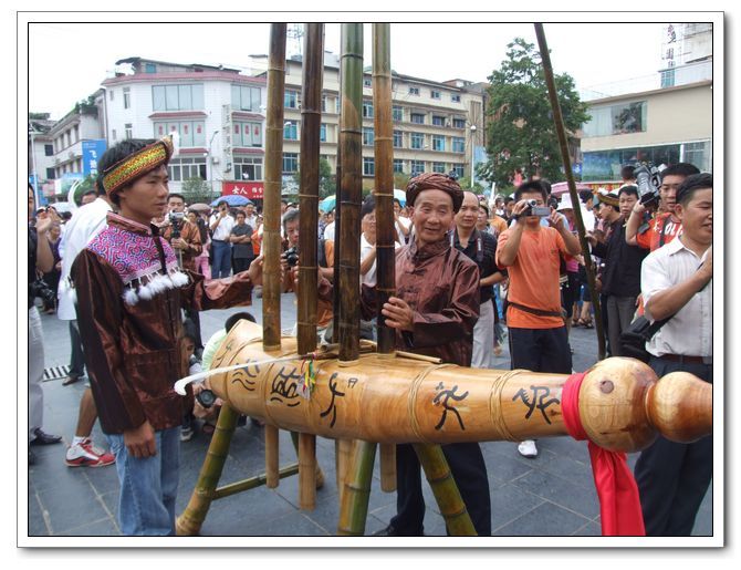 2008年,為慶祝北京奧運會開幕,苗族著名蘆笙師傅梁炳光特制了一把高達(dá)10余米,重達(dá)240余公斤的蘆笙。這把號稱當(dāng)今蘆笙的王中王、世界蘆笙之最的蘆笙從備料到制作完成,梁師傅足足用了一個多月。這把蘆笙在北京奧運會期間曾在融水民族廣場展示,萬人矚目。
