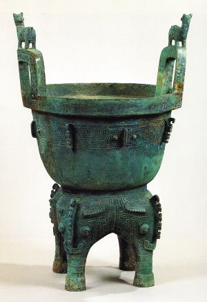 銅器的重要性不僅在其大小,更在其如何使用。殷墟青銅器的種類與使用方法,在繼承傳統(tǒng)的基礎之上,蘊含著豐富的內容。商王朝早期階段已經大量鑄鼎、尊、斝、鬲、爵,經過商中期的發(fā)展,到殷墟時期,以青銅容器為核心的禮制體系得以完備,突出表現(xiàn)在觚、爵作為酒器配對登場。殷墟發(fā)現(xiàn)的墓葬,死者等級越高,觚、爵套數(shù)越多,形成以觚、爵為核心,加以食器、樂器、禮器的組合,到西周才演變?yōu)橐远?、簋等食器為重心的組合。