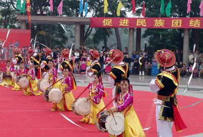 象帽舞是朝鮮族富有代表性的一種舞蹈形式,深受當(dāng)?shù)爻r族居民喜愛。每逢節(jié)日、慶典等特殊日子,人們就跳起歡快的舞蹈,搖動(dòng)色彩繽紛的象帽,線條流暢的長(zhǎng)長(zhǎng)飄帶旋轉(zhuǎn)如風(fēng),在舞者周圍畫出各種光輝耀眼的美妙彩環(huán),獨(dú)具特色的舞蹈體現(xiàn)了朝鮮族人民在勞動(dòng)、生活中的喜悅之情和活潑大方的民族氣質(zhì)。