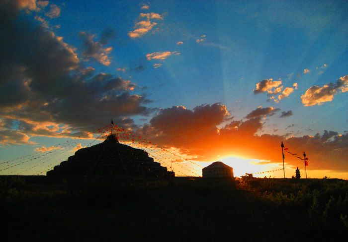 數(shù)百年來,蒙古族牧民始終敬仰、供奉著本家族或部落傳承的敖包。草原上每年都要舉行多層面的敖包社祭活動。
