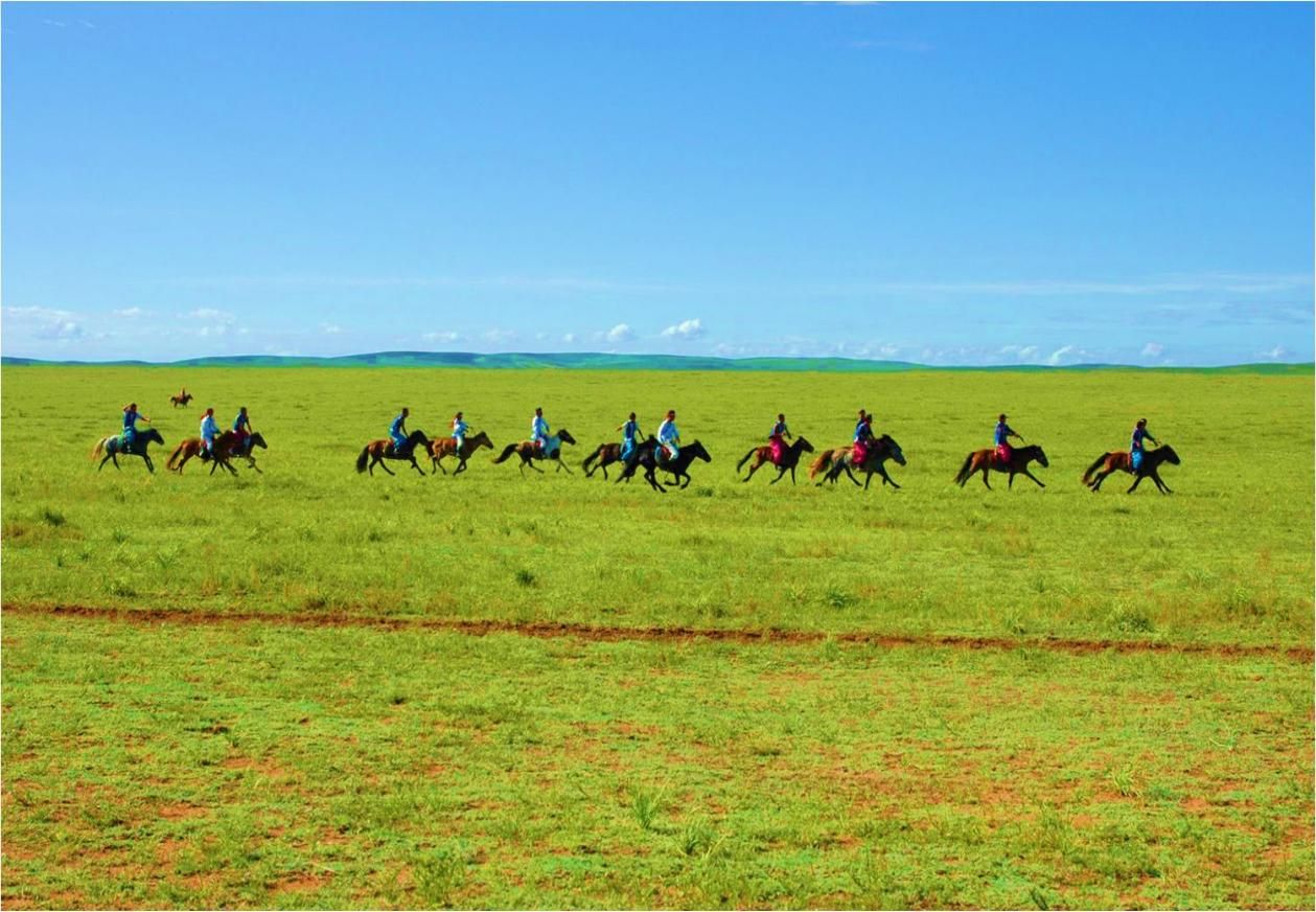 蒙古人對(duì)賽馬很重視。牧民平時(shí)發(fā)現(xiàn)好馬,就進(jìn)行調(diào)教,不是那達(dá)慕也進(jìn)行賽馬,賽馬又分為快馬、走馬和顛馬??祚R,八歲以上的賽程60里;八歲以下的40~50里;走馬,賽程30里。旗級(jí)那達(dá)慕的冠軍馬,授予“駿馬”稱號(hào),佩戴纓子和彩帶??祚R比賽,多由兒童們進(jìn)行,賽馬時(shí),有若干騎馬裁判參加,一二三等馬分別授旗做記號(hào)。