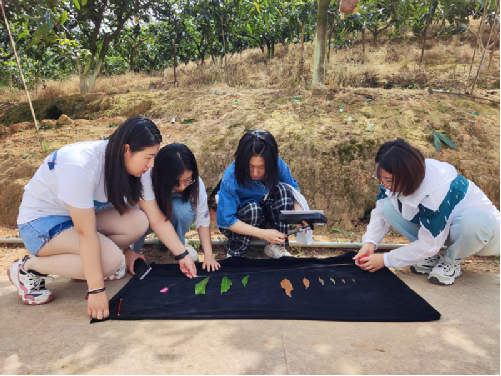 三是恩樂鎮(zhèn)玻烈村芒果種植地調(diào)研。9月4日上午,實踐團成員前往恩樂鎮(zhèn)玻烈村芒果種植地,對基地的病蟲害情況進行調(diào)研。調(diào)研中,種植戶向?qū)嵺`團成員詳細介紹了基地的氣候條件、技術(shù)管控以及所使用的肥料和農(nóng)藥。通過種植戶的介紹以及實地觀察,實踐團成員結(jié)合所學(xué)知識,指出了種植基地存在的病害和發(fā)生規(guī)律,并給出了具體防治意見。