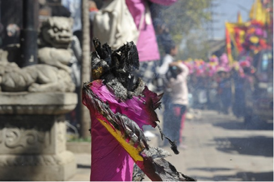 農(nóng)歷二月初六,迎太子入城。這一天在佛教徒的帶領(lǐng)下,人們焚香沐浴,衣冠整齊,虔誠地將“太子”(用布扎油漆制成的太子行像)請(qǐng)到行宮或本主廟里。這一年的新郎為太子抬轎,希望能得到太子的保佑而使新婚的妻子孕生男兒。
