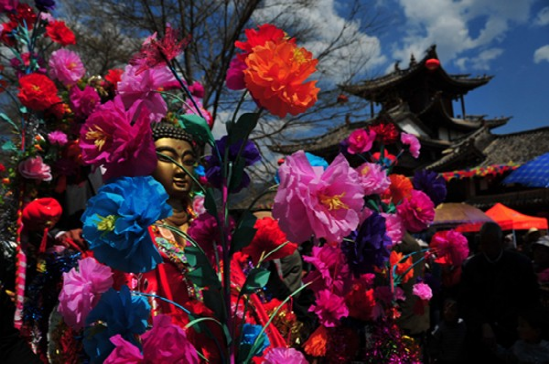 “二月八”是大理州劍川縣有著上千年歷史的白族傳統(tǒng)重要節(jié)慶之一,時(shí)間為每年農(nóng)歷二月初八日。其形成的主要因素是受佛教密宗文化的影響。相傳,農(nóng)歷二月初八日,釋迦牟尼生前為毗羅衛(wèi)國凈飯王的太子出皇宮到民間查看,看到人世間生、老、病、死等種種疾苦,遂立志創(chuàng)立佛教,普渡眾生。便于當(dāng)晚舍棄皇宮生活和太子的地位,踰城出家修行,尋求解除百姓種種苦難的道路,最后創(chuàng)立了佛教。明、清兩代至今,每年的二月八,廣大佛教信徒聚集在劍川縣城金華鎮(zhèn)和沙溪鎮(zhèn)寺登街,舉行盛大的紀(jì)念活動(dòng),抬著釋迦牟尼的太子雕像,一路鐘鼓齊鳴,焚香誦經(jīng),浩浩蕩蕩,漫游“四門”,常常聚集萬人,一般村嫗老婦也喜歡牽兒帶孫參加游行,并把自家的孩子裝扮成“太子”,以沾“佛”氣。