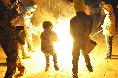 不到黃昏,鞭炮聲就響起來了。新生兒的父親點燃火把后,孩子們迫不及待地拿著小火把和松明粉,跑來跑去燒新生兒的的各種親戚,大人們樂呵呵地接受孩子們噴灑過來的火焰,并一致說著很吉祥的祈愿祝福語?!皬拇嘶逇獠辉趪D!”、“一年更比一年好呀!”、“紅紅火火又一年”。男女老少在火把樹下吃喝玩樂,其樂融融。糖、炒蠶豆、梨、蘋果等被大家傳來傳去,新生父親挨個向親友敬酒。親友鄰居喝著喜酒,一致祝福新生兒安康成長,將來富貴吉祥。