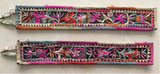 ▲腰巾繡花帶,刺繡紋樣植物紋、幾何紋居多,基本都是黑底彩繡,色彩穩(wěn)重大方。