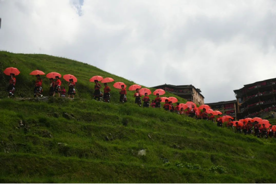 2014年,龍勝瑤族服飾(紅瑤服飾)以其精湛的手工藝和文化底蘊(yùn)入選國(guó)家級(jí)非物質(zhì)文化遺產(chǎn)代表性項(xiàng)目名錄擴(kuò)展項(xiàng)目名錄。如今的“曬衣節(jié)”已不僅是紅瑤的傳統(tǒng)佳節(jié),“農(nóng)歷六月六,廣西龍脊看紅衣”等曬衣節(jié)系列活動(dòng)已成為桂林山水游的一張名片,讓各地游客充分感受多姿多彩的民族風(fēng)情。紅瑤同胞們用自己獨(dú)特的方式,為中國(guó)共產(chǎn)黨成立100周年獻(xiàn)上自己的祝福。
