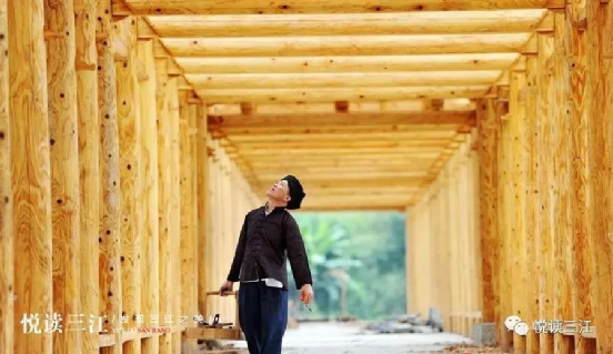 2003年,楊家第四代木構(gòu)傳承人楊求詩(shī),成功出師。由于深得祖?zhèn)骷妓?,加之勤奮好學(xué)、悟性高,楊求詩(shī)很快成為當(dāng)?shù)赜忻哪窘硯煾?。楊求?shī)建造的木建筑有鼓樓、風(fēng)雨橋、吊腳樓、戲臺(tái)、寨門(mén)、涼亭等,不僅繼承“干欄”式建筑的優(yōu)良特點(diǎn),而且內(nèi)設(shè)吊腳,使建筑更加美觀(guān),創(chuàng)立了別具一格的木建筑工藝體系。最近幾年,他陸續(xù)承接了一些外地的莊園、度假村、風(fēng)雨橋、長(zhǎng)廊、寨門(mén)等項(xiàng)目,但更多的還是修建本地鼓樓,三江的平懂、皇朝、獨(dú)峒的鼓樓均出自他的雙手。