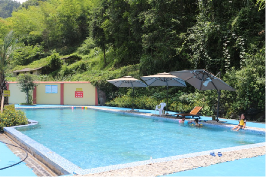 大人們在青山綠水間泡溫泉、賞風(fēng)景,孩子們在兒童水上樂園嬉戲玩鬧,中晚飯點(diǎn)時在農(nóng)家樂里吃著當(dāng)?shù)亓魉B(yǎng)殖的生態(tài)魚,體驗(yàn)著鄉(xiāng)村風(fēng)情,舒適愜意遍布全身。