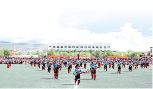 走進拉孜鎮(zhèn)中心小學,伴隨著課間操音樂,孩子們或旋轉(zhuǎn)或跳躍,朝氣蓬勃。作為西藏自治區(qū)首批“非遺特色縣”,拉孜縣將非物質(zhì)文化遺產(chǎn)拉孜堆諧改編成堆諧操,并在校園推廣。