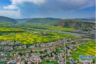 航拍門(mén)源縣油菜花海。新華網(wǎng) 宋忠勇 攝