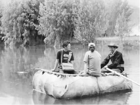 牛皮船特別適合西藏河流的特點,它吃水淺,牛皮入水,一經(jīng)泡浸便發(fā)軟,有彈性,對水中暗礁等物耐撞擊、摩擦,且自重量小,不管河道深淺,都可隨意暢行;另外,牛皮船還有一個優(yōu)點,就是可靈活多用,如果水上行程較遠,乘客人數(shù)較多可把兩只牛皮船并對捆綁在一起使用,這樣不但提高了安全性能,而且人和東西不分散,便于一次性過江。牛皮船輕便靈活,船工可隨時搬來搬去,船隨人行,遇水撐舟,上路背在肩上,都十分方便。平時不用時從河邊背到自己家存放,或者放在江岸固定的船房內(nèi)。