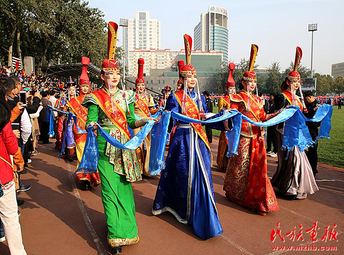 中央民族大學操場上熱鬧非凡。悠揚的馬頭琴聲,飄香的奶酒,繽紛絢麗的蒙古族服飾,搏克、射箭等競技活動以...