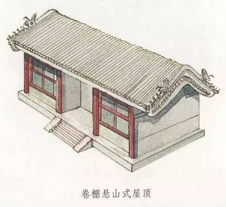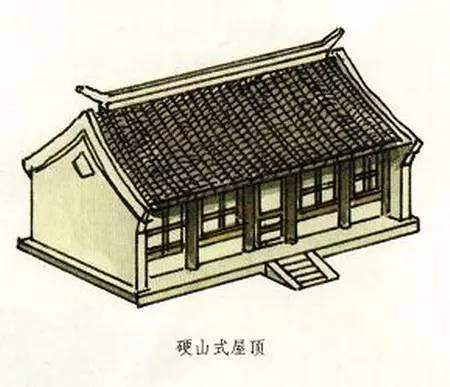 硬山式屋頂有一條正脊和四條垂脊。這種屋頂造型的最大特點(diǎn)是比較簡(jiǎn)單、樸素,只有前后兩面坡,而且屋頂在山墻墻頭處與山墻齊平,沒(méi)有伸出部分,山面裸露沒(méi)有變化。明、清時(shí)期及其后,硬山式屋頂廣泛地應(yīng)用于我國(guó)南北方的住宅建筑中。正因?yàn)樗燃?jí)比較低,所以屋面都是使用青瓦,并且是板瓦,不能使用筒瓦,更不能使用琉璃瓦。