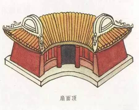 扇面頂和萬(wàn)字頂一樣,是一種非常別致的屋頂形式,扇面頂顧名思義,就是扇面形狀的屋頂形式,其最大特點(diǎn)就是前后檐線呈弧形,弧線一般是前短后長(zhǎng),即建筑的后檐大于前檐。建筑的西山墻的墻線若向內(nèi)延伸,可以交于一點(diǎn),而這一點(diǎn)就是扇形的扇子柄端。扇面頂?shù)膬啥丝梢宰龀尚?、懸山,也可做成卷棚形式。扇面頂一般都用在形體較小的建筑中,會(huì)讓建筑看起來(lái)更為小巧可愛(ài)。